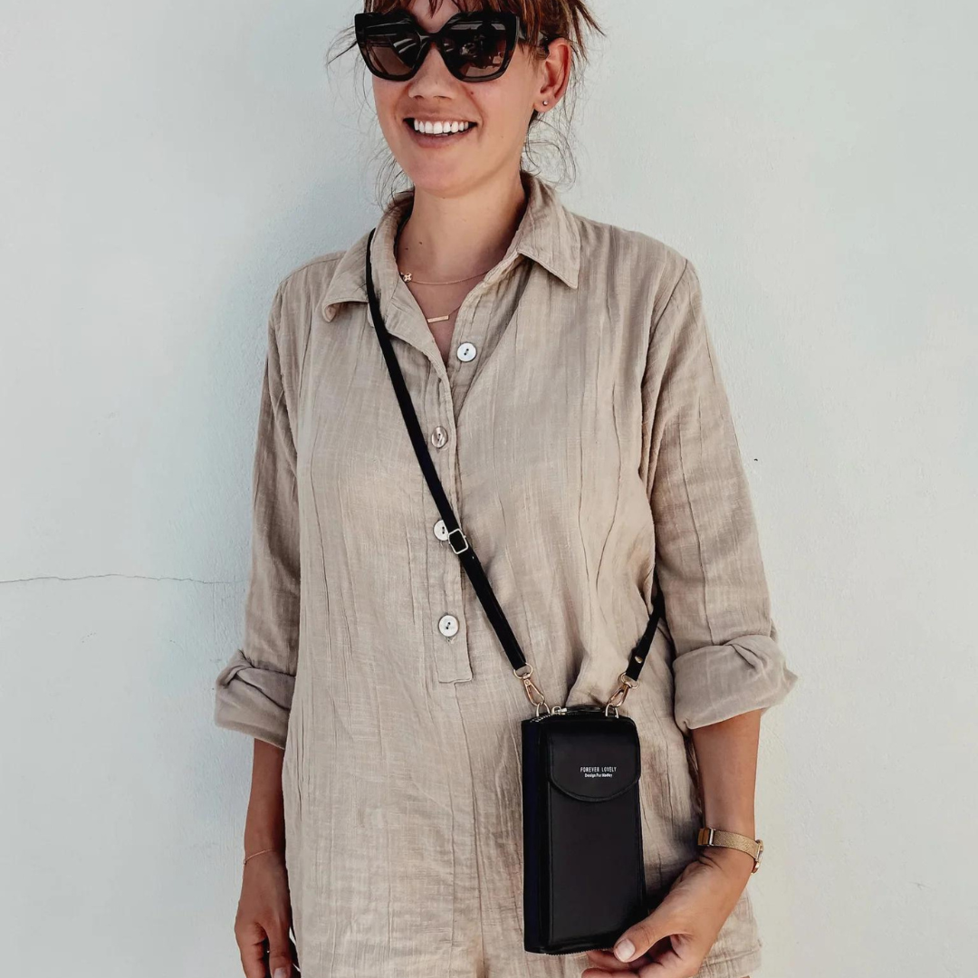 Vous pouvez la porter au poignet ou l'utiliser comme sac crossbody grâce à la bandoulière incluse.